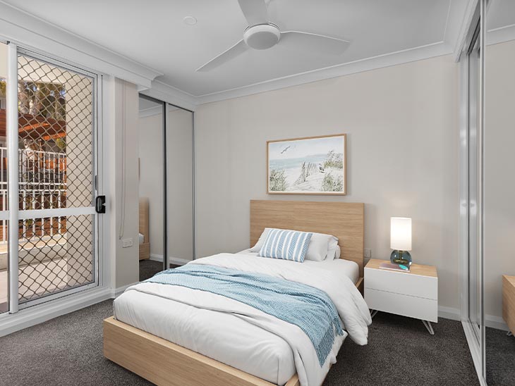 Queens Park’s spacious one and two-bedroom independent living units are filled with natural light and offer ample storage.