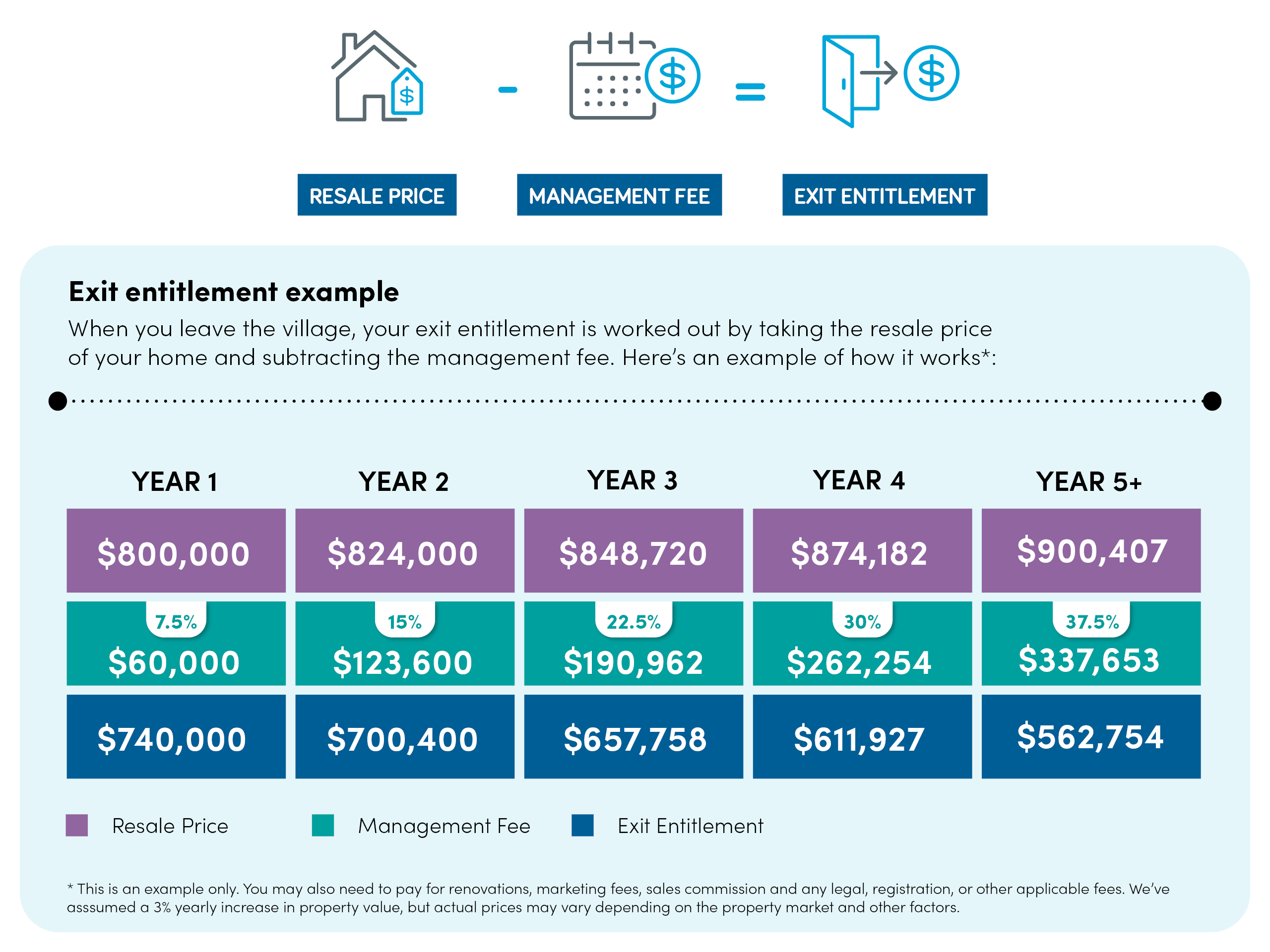 When you move out, you’ll continue to pay village service fees and strata levies until your home is sold. In some cases, these fees may be capped or shared over time to keep things fair.